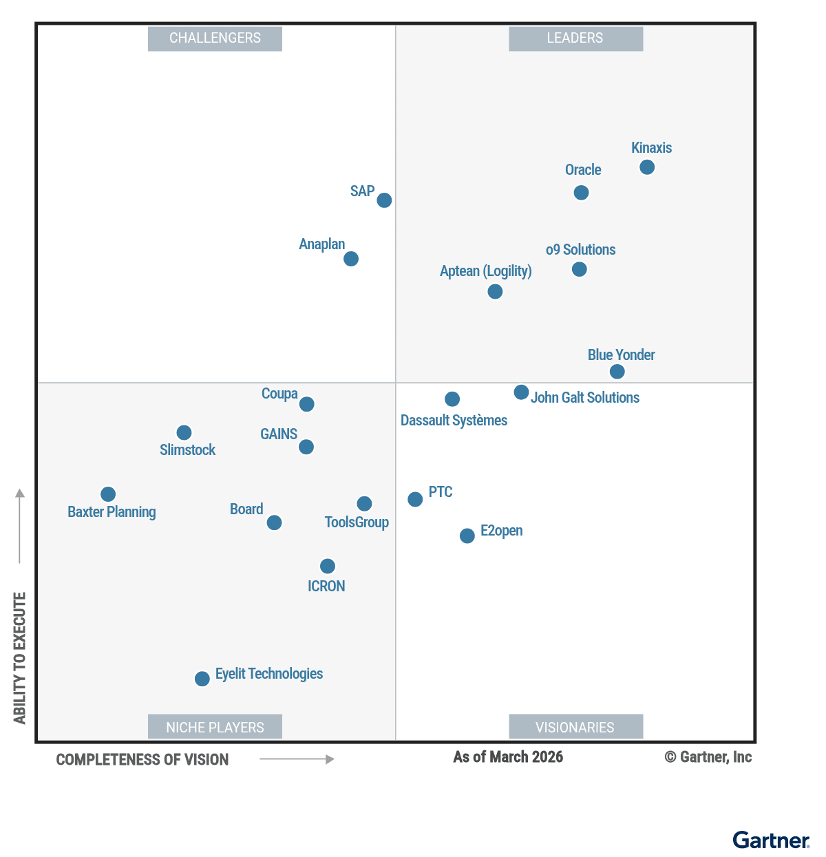 Gartner, Magic Quadrant for Supply Chain Planning Solutions for Discrete Industries, Pia Orup Lund, Joe Graham, Julia Von Massow, Buse Aras, Eva Dawkins, March 18, 2026.