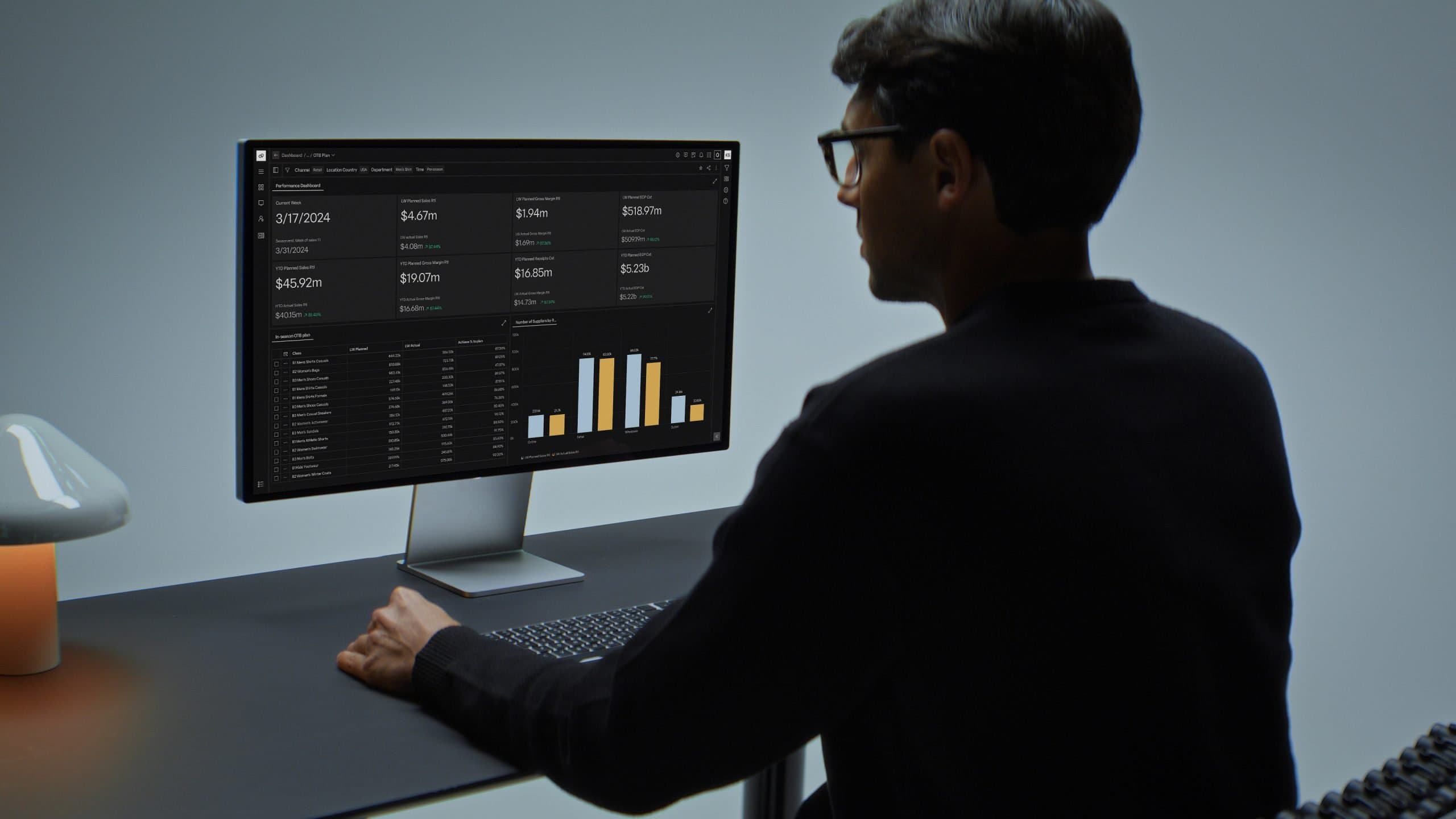 Set top-down financial goals by channel, location, and time period, including sales, margin, and inventory investment targets.
